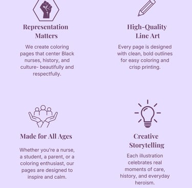 Nurses Who Dream celebrates the legacy, strength, and brilliance of Black nurses from the 1860s through today. Each page blends history, creativity, and empowerment — all brought to life through bold, beautiful line art. Perfect for stress relief, learning, and honoring the heroes who changed healthcare.